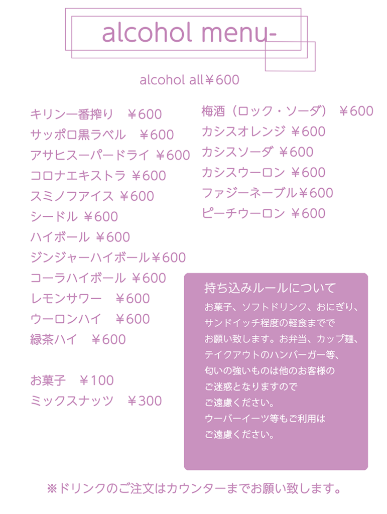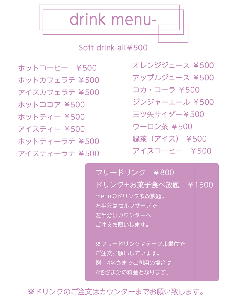 原材料費の高騰によりドリンクの価格改定を行いました。